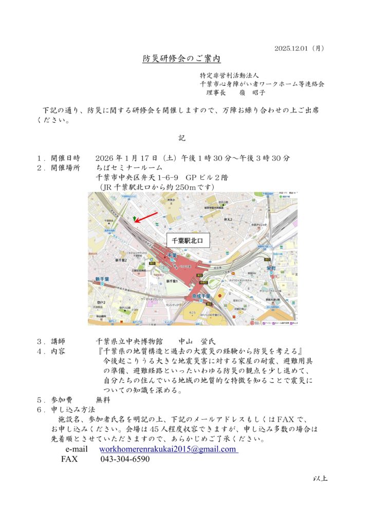 下記の通り、防災に関する研修会を開催しますので、万障お繰り合わせの上ご出席